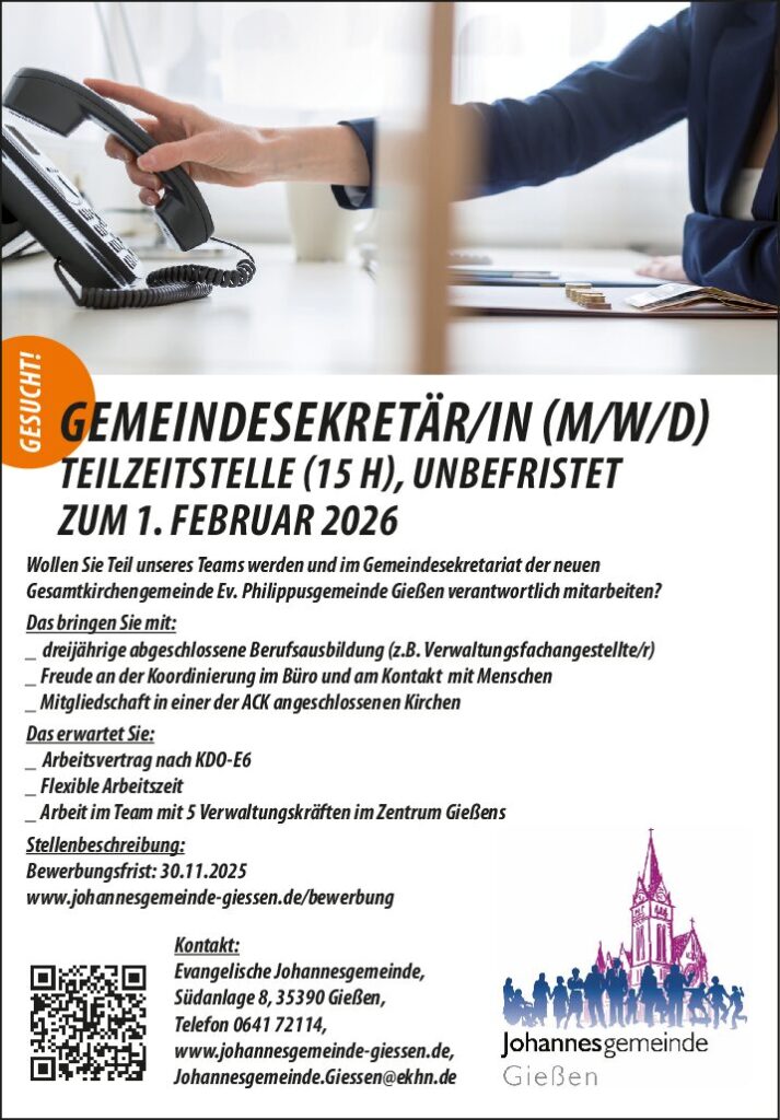Ausschreibung der Sekretariatsstelle im Gemeindebüro für Beginn Februar 2026